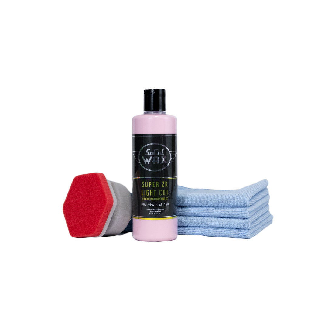 Start with a vehicle that has been properly washed and fully dried. Apply a small amount of Super 2K Light Cut to the provided hex applicator, then work the product into one panel at a time using controlled, circular motions to ensure even coverage. Once the product begins to haze, wipe the surface clean with a dry microfiber towel until smooth and clear. Continue around the vehicle as needed until the finish shows visible improvement.
